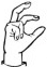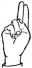 На ћирилици написано ЕВГЕНИЈЕ БРЕЗНИКАР састоји се из 17 слова [?]. Исписано ћириличном једноручном азбуком за глувонеме: